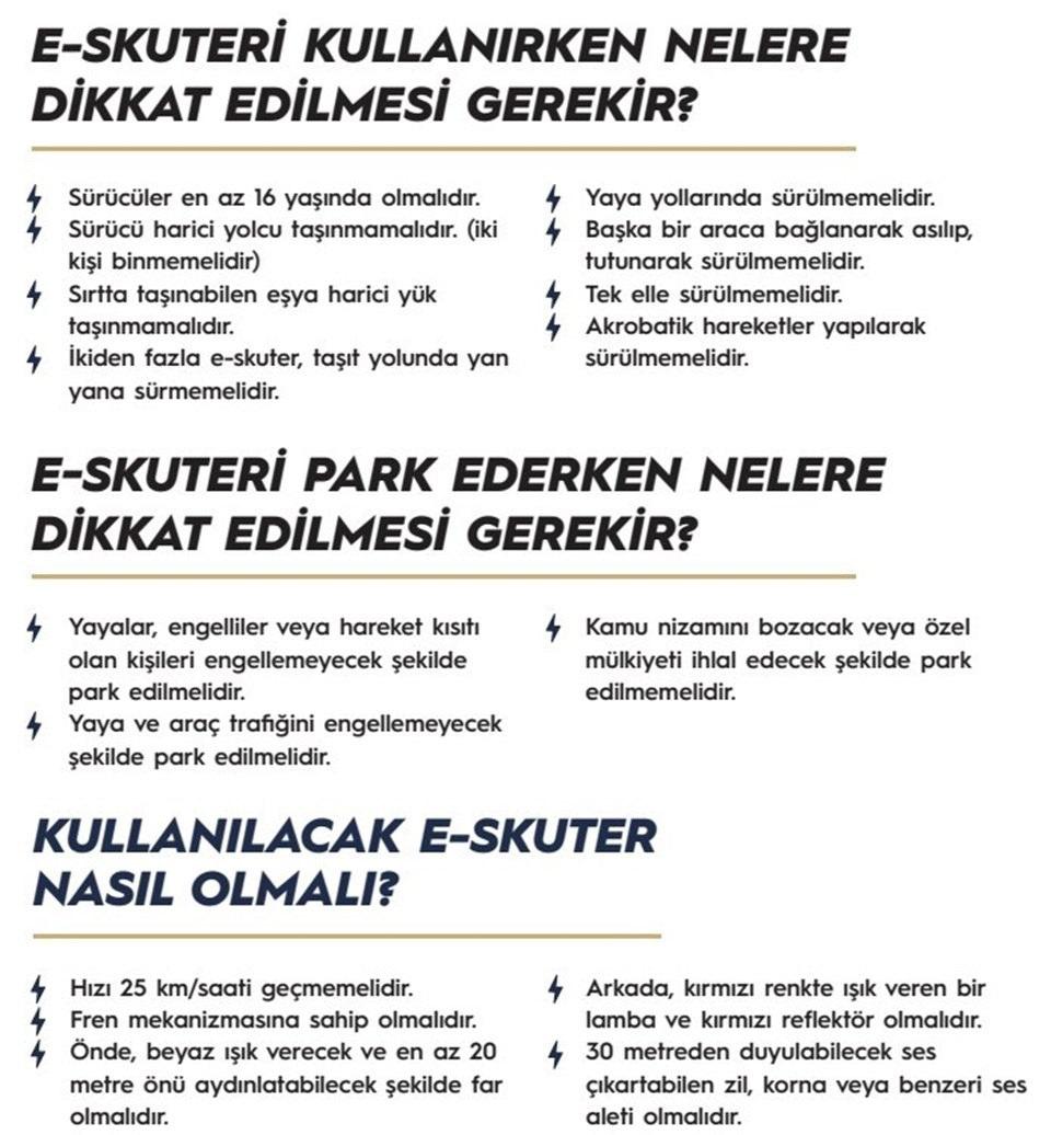 Elektrikli scooter sahiplerini ilgilendiren kanun için düzenlemeler yapılıyor. Trafikte çokça görülmeye başlanan, rastgele kural, kanuna uymadan kullanımı artan, yaralanmalı yahut ölümlü trafik kazalarına karışan, maddi hasarlara neden olan, yol kenarı ve kaldırımlara usulsüzce park edilen scooterlar denetim altına alınıyor.