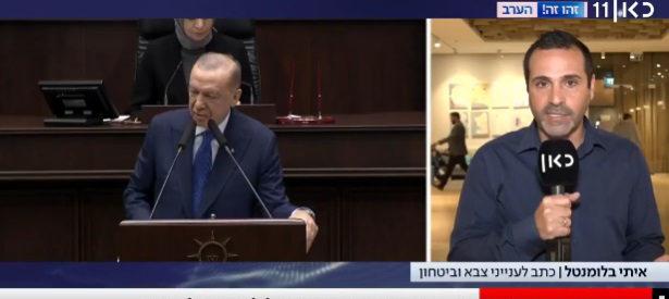 Türkiye’nin geçişe ‘asla müsaade verilmeyeceğini’ direttiğini söyleyen KAN muhabiri, “İsrail ile Türkiye ortasındaki gerginlik sürüyor. Akşam edindiğimiz bilgilere nazaran, Azerbaycan’da Türk heyetiyle görüşmeye giden İsrailli yetkilileri taşıyan hava kuvvetlerimize ilişkin bir uçak, rotasını değiştirmek zorunda kaldı. Zira Türkler, RM-707 kodlu uçağımızın Türkiye hava alanından geçmesine müsaade vermedi. Üstelik uçakta üst seviye isimler olmasına karşın. Türkler, uçağın hava alanlarından geçmemesi konusunda ısrarcı oldular. Açıkçası bu pek de diplomatik bir yol değil. Bu nedenle uçağımız, Bulgaristan ve Karadeniz üzerinden Ermenistan’ın da hava alanını kullanmak zorunda kaldı.” diye konuştu.