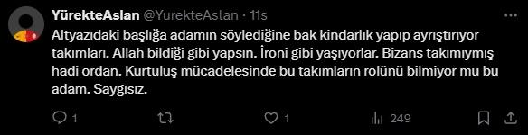 Yılmaz Özdil’in Göztepe sevgisini lisana getirirken üç büyük kadroya yönelik söylediği kelamlar toplumsal medyada gündem oldu. Galatasaray, Fenerbahçe ve Beşiktaş grubunu tutan taraftarlar Özdil’in görüntüsünün altına yüzlerce yorum yaparak kulüplerine yönelik sarf edilen ‘Bizans takımı’ nitelendirmesine teki gösterdi.